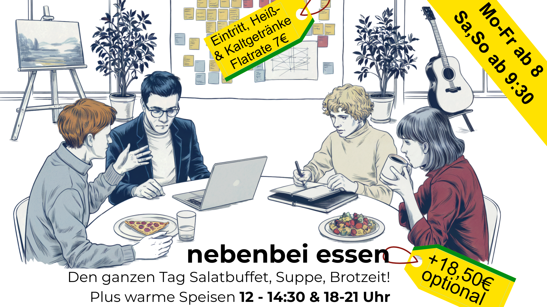 Und wer nur die 7€ - Kaffee, Tee, Kakao und Softdrink-Flatrate möchte und nichts oder nur eine Kleinigkeit essen will, ist natürlich auch willkommen!