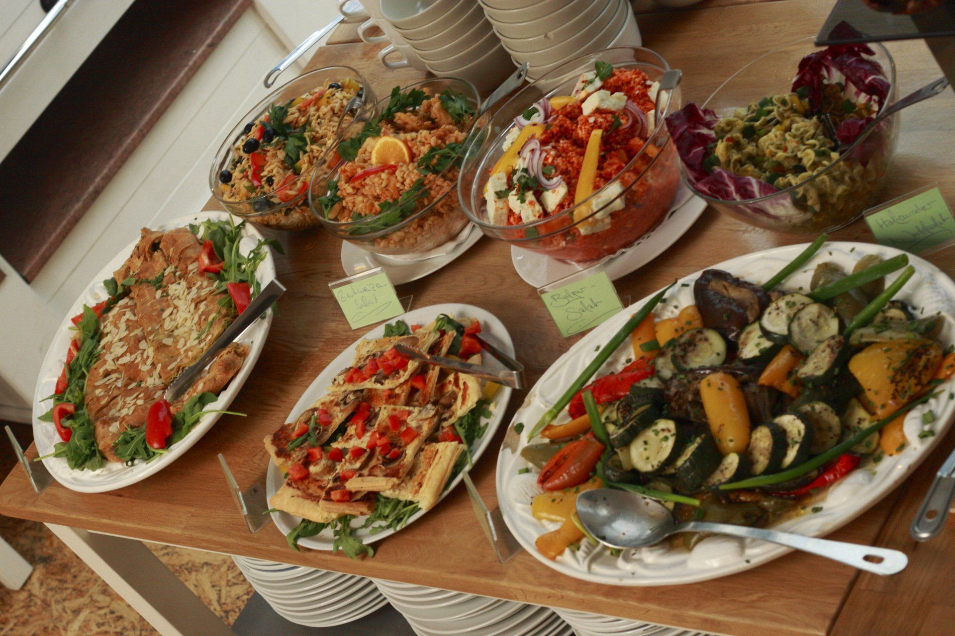 At the entrance on the ground floor, you can find snacks, homemade cakes, long drinks, beer, and wine in our "Späti" (snack bar). There's also a buffet available all day. Overnight stay? We have a large apartment for up to 12 guests with a kitchen, living room, and sauna. See www.WG-Hotel.de. And next door there is the www.UnperfektHOTEL.de for up to 36 guests.